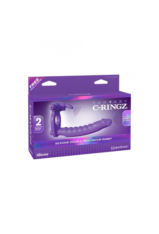 Un incroyable sextoy 3 en 1: le cokring en silicone améliore la qualité de l'érection de monsieur, tandis que le lapin vibrant stimule le clitoris de madame, et que le godemiché en silicone nervuré vous permet de profiter du frisson de la double pénétration sans avoir à vous soucier d'introduire un troisième partenaire.