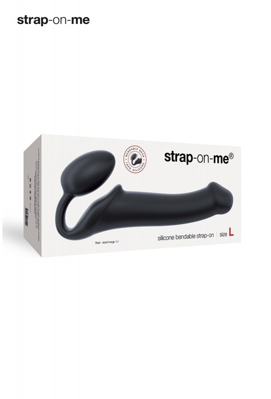 Superbe gode-ceinture flexible de la marque Strap-On-Me, il est noir et mesure 3,7 cm de diamètre.