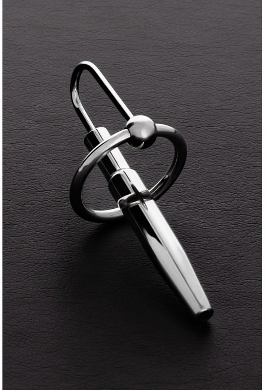 Fabriqué en acier inoxydable de haute qualité avec une finition polie, le Pénis plug ring est composé d'un anneau amovible sur lequel est fixé un petit plug d'urètre en forme de "Mini Fucker".