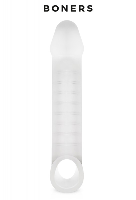 Besoin de développer la taille de votre pénis ou à la redresser, ou bien même retarder l'éjaculation ? La gaine d'extension de pénis de Boners est ce qu'il vous faut. Manchon pénien pour l'agrandissement du pénis, ajoutant 5 cm de longueur supplémentaire et 5 cm de diamètre maxi au pénis. Pour mettre la rallonge sur votre pénis, n'hésitez pas à appliquer un lubrifiant à l'intérieur du manche.