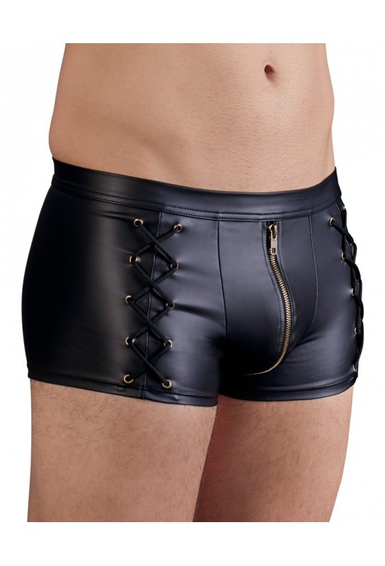 BDSM Pleasure est ravi de présenter le Boxer TITAN Noir, une pièce audacieuse qui allie élégance et sensualité. Confectionné dans un tissu en tulle fin et transparent, ce boxer met en valeur la silhouette tout en offrant un confort inégalé. Sa ligne en simili polyuréthane ajoute une touche de sophistication, tandis que le zip en métal apporte une note de modernité et de praticité.