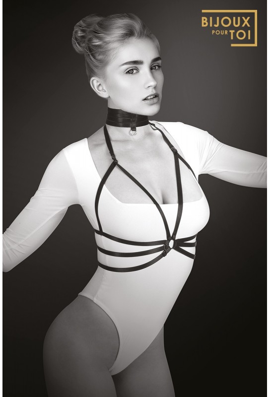 Le harnais Julia, de la marque Bijoux Pour Toi, est un harnais en deux parties: un harnais de buste de style Fetish SM soft, et un tour de cou assorti. L'ensemble est très tendance et glamour, et sublime votre poitrine et votre cou.