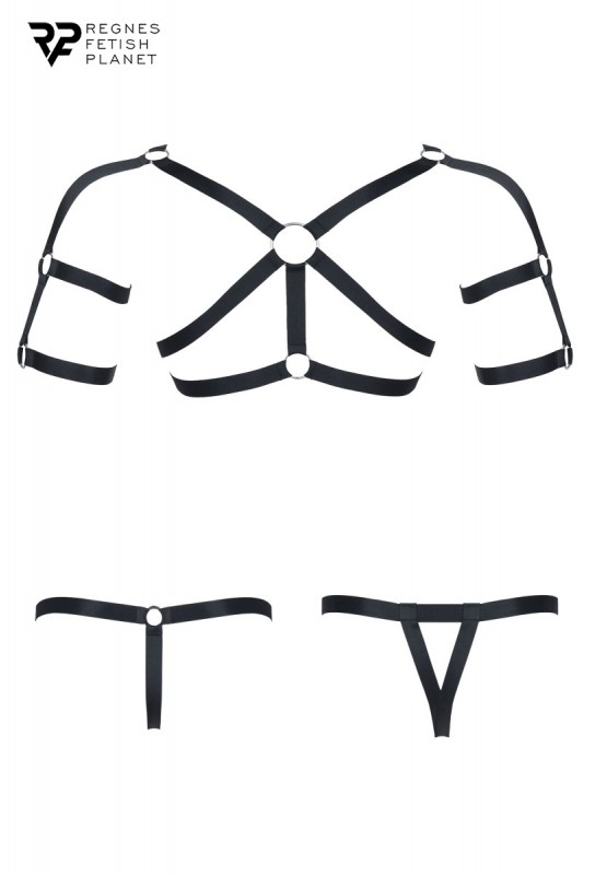 BDSM-pleasure est charmé de vous proposer, l'ensemble harnais et deux strings ouverts BDSM de la marque Regnes en Europe. Le tissu de l'ensemble est en élastique de bonne qualité pour vous permettre d'être dans un confort inégalable, lors de vos soirées érotiques.