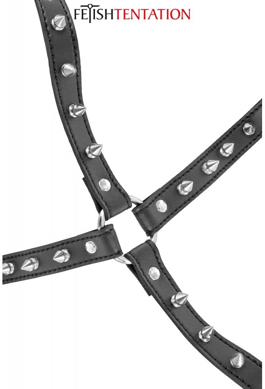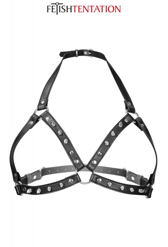 BDSM-pleasure est ravi de vous soumettre, ce harnais poitrine BDSM avec pointes de la marque Fetish Tentation. Le harnais met la poitrine en valeur avec ses sangles en simili cuir de haute qualité. Faites-vous belle et exprimez-vous avec ce harnais pour vous distinguer.