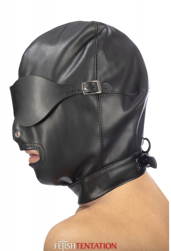 - Cagoule BDSM avec ouverture pour la bouche et bandeau amovible pour les yeux
