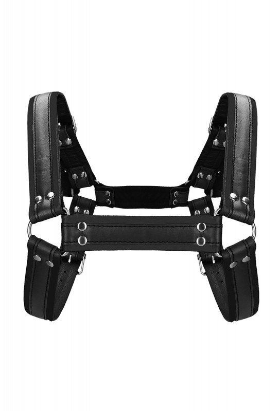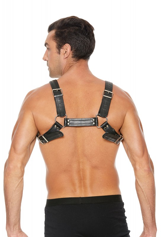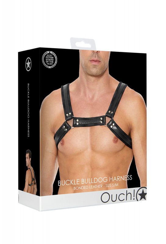 Pour les adeptes de la mode fétichiste, la marque Ouch! a conçu le "Chest Bulldog Harness", un magnifique harnais noir en cuir véritable, orné de fermetures en acier inoxydable.