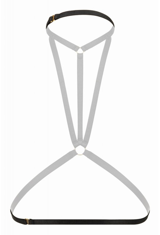 Découvrez le harnais bralette Obsession : lanières noires élastiques à porter sur ou sous vos vêtements. Idéal pour un style chic, des jeux BDSM ou moments coquins.
