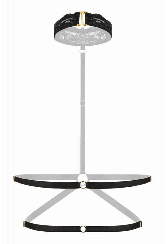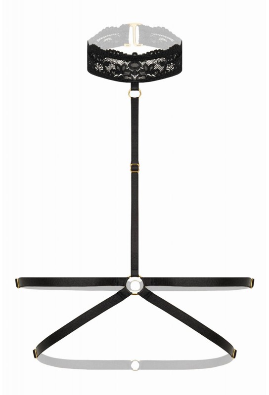 Sublimez votre soumise avec le harnais bralette Viola. Col en dentelle noir, lanières élastiques, à porter sur ou sous vos vêtements pour une allure chic ou un look audacieux.